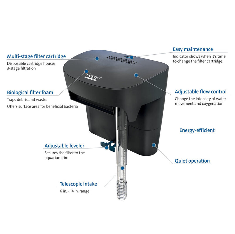 Customizable filtration – OASE offers additional chemical media cartridges that can be added to the BioStyle filter based on your aquarium needs. OASE also offers an empty cartridge for further optimization. all sold separately