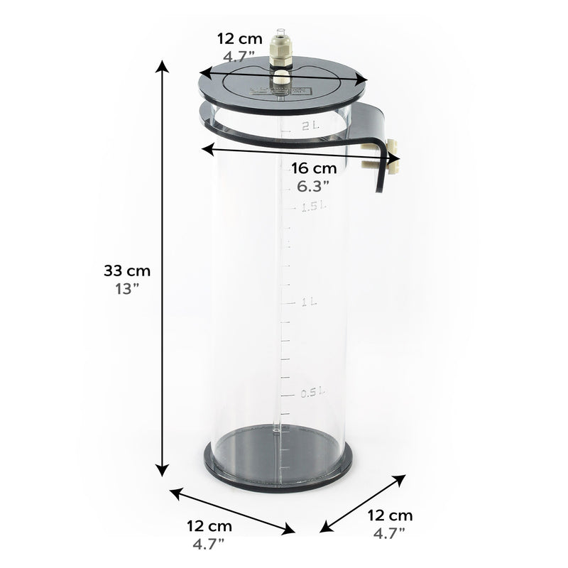 The SR Aquaristik Pro Dose 2L Dosing System Containers are space-saving liquid storage containers that can be used for a wide variety of aquarium additives. The product is made of flame-polished cast acrylic cylinders with quick connections. They are clear acrylic so that you always know how much dosing liquid you have left. SR Aquaristik Dosing System Containers are ideal for dosing 2 part calcium/alkalinity, trace elements, magnesium, strontium, etc.