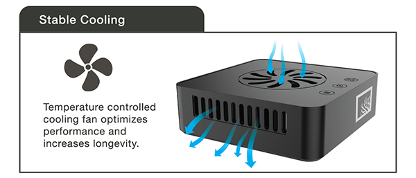 Temperature controlled cooling fan optimizes performance and increases longevity