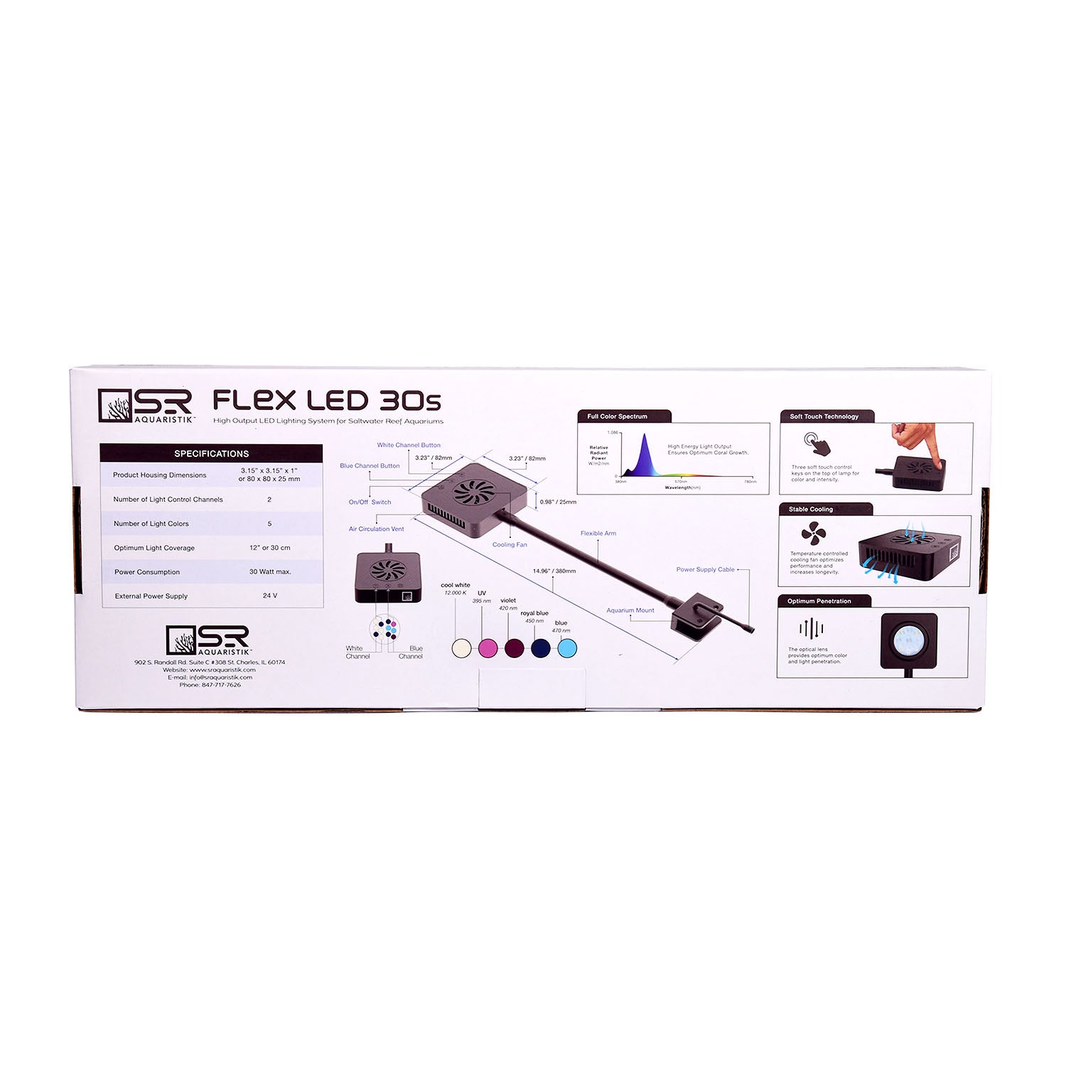 The SR Aquaristik Flex LED 30S has a 3 Year Limited Warranty. Please contact us for details.