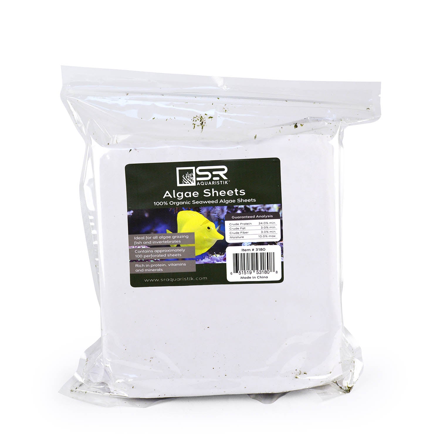 SR Aquaristik 100% natural, organic seaweed algae sheets are made with the highest quality seaweed available. Ideal for marine herbivores species such as tangs, angels, butterfly fish and others. Also a great food supplement for freshwater fishes such as cichlids, koi and goldfish.