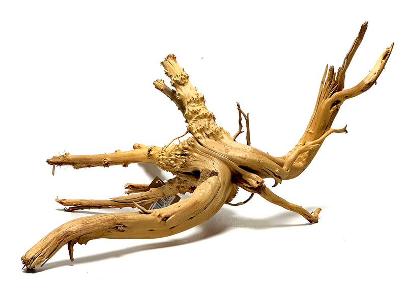Your new Weathered Spider Wood has been kiln dried for shipping purposes and to prevent contamination and unwanted pests. For this reason, the wood may not sink immediately, it will need to absorb water. You will need to use a weight or rock to initially sink the wood, after one week, the wood will sink by itself. Also, a white fungus might develop over the wood but that is normal. Fish may even eat it, The fungus will not last long! Moss, Anubias, Java Fern look beautiful attached to this wood!