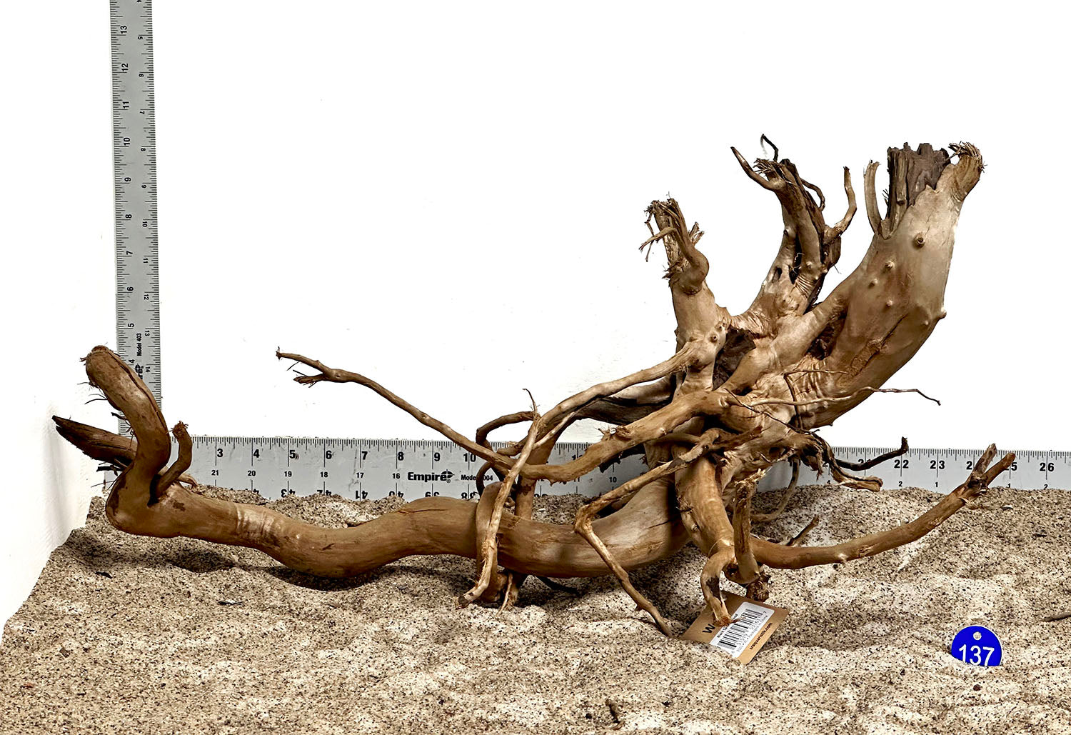 Your new Spider wood has been kiln dried for shipping purposes and to prevent contamination and unwanted pests. For this reason, the wood will not sink immediately, it will need to absorb water. You will need to use a weight or rock to initially sink the wood, after one week, the wood will sink by itself. Also, a white fungus might develop over the wood but that is normal. Fish may even eat it, The fungus will not last long! Moss, Anubias, Java Fern look beautiful attached to this wood!