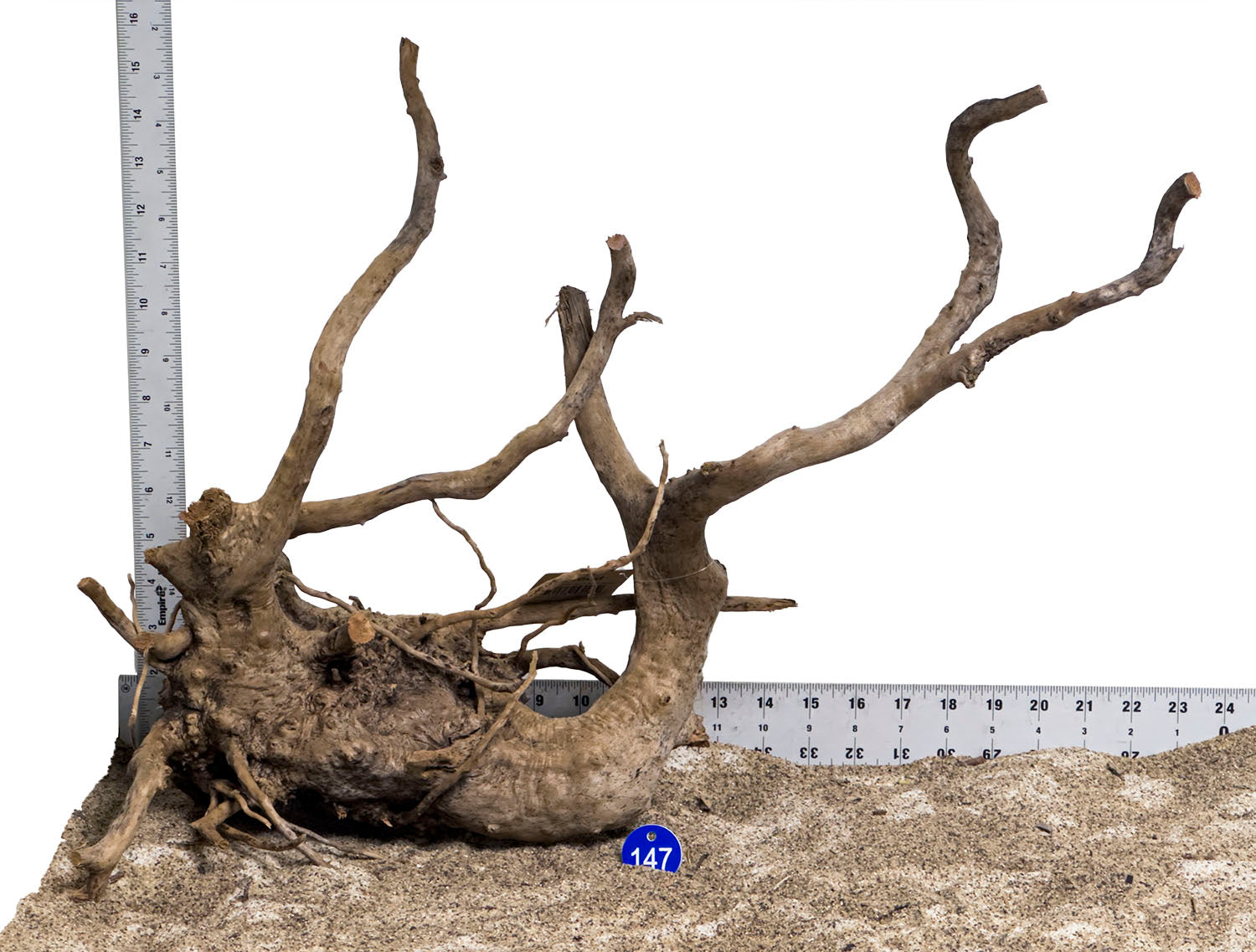 Your new Spider wood has been kiln dried for shipping purposes and to prevent contamination and unwanted pests. For this reason, the wood will not sink immediately, it will need to absorb water. You will need to use a weight or rock to initially sink the wood, after one week, the wood will sink by itself. Also, a white fungus might develop over the wood but that is normal. Fish may even eat it, The fungus will not last long! Moss, Anubias, Java Fern look beautiful attached to this wood!