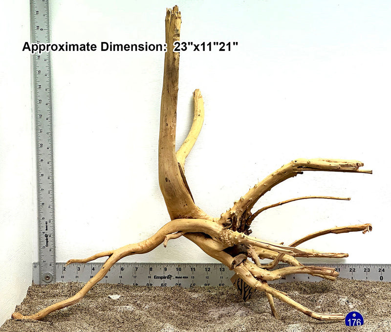 Your new Weathered Spider Wood has been kiln dried for shipping purposes and to prevent contamination and unwanted pests. For this reason, the wood may not sink immediately, it will need to absorb water. You will need to use a weight or rock to initially sink the wood, after one week, the wood will sink by itself. Also, a white fungus might develop over the wood but that is normal. Fish may even eat it, The fungus will not last long! Moss, Anubias, Java Fern look beautiful attached to this wood!