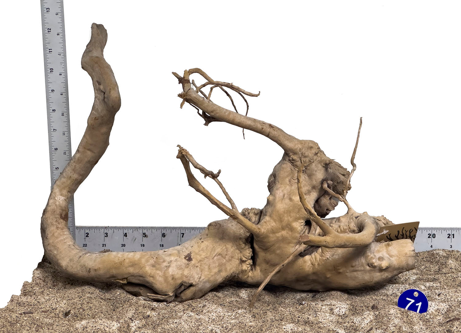 Your new Spider wood has been kiln dried for shipping purposes and to prevent contamination and unwanted pests. For this reason, the wood will not sink immediately, it will need to absorb water. You will need to use a weight or rock to initially sink the wood, after one week, the wood will sink by itself. Also, a white fungus might develop over the wood but that is normal. Fish may even eat it, The fungus will not last long! Moss, Anubias, Java Fern look beautiful attached to this wood!